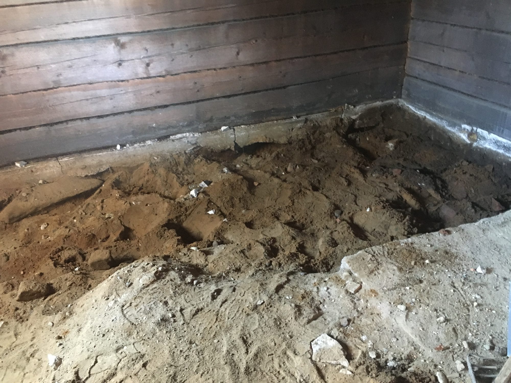 Seuraava vaihe ei sitten ollutkaan ihan niin auvoista. Äkkiseltään sitä ajattelisi, että eihän siinä nyt kauan nokka tuhise, kun niin pienen saunatilan lattiat lapioi tyhjäksi maa-aineksesta, mutta on se kyllä aikamoista hommaa. Päivän aikana kuitenkin saatiin hyvin saunaa tyhjennettyä, mutta hommaa on vielä aika lailla. Kylpyhuoneen, joka on saunan kanssa saman kokoinen, tyhjennystä ei ole vielä aloitettu eli kyllä tässä hetkeksi on taas kotikuntosali pystyssä.